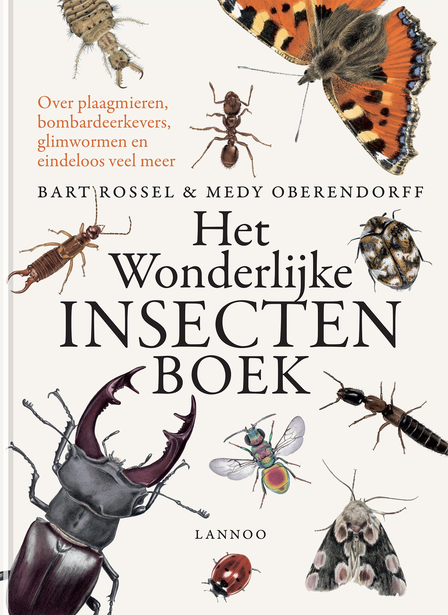 Bekroond met de 'vlag en wimpel' 2018 Over plaagmieren, bombardeerkevers, glimwormen en eindeloos veel meer. Bart Rossel & Medy Oberendorff, vormgeving Gert Dooreman. Ontdek de fascinerende wereld van de sterkste, nuttigste, lastigste en succesvolste dieren op aarde Ontdek waarom de glimworm gloeit, hoe de bombardeerkever aan zijn naam komt en op welke manier een rups zich kan vermommen. Lees meer over het mierenalarm, de gruweldaden van de juweelwesp en de wiskundige cicade. Lees alles over insecten in dit prachtige boek. ISBN 9789401441261 Illustrations for Het Wonderlijke Insectenboek, Lannoo in cooperation with Bart Rossel , designed by Dooreman. Discover why the glow-worm glows, how the Bombardier Beetle got its name and how the caterpillar can disguise itself. Learn more about the ants alarm, the atrocities of the Emerald Wasp and the mathematical cicadas. Insects are without a doubt the strongest, most usefull, irritating and successfull animals on this planet. Learn all about them in this wondrous book.